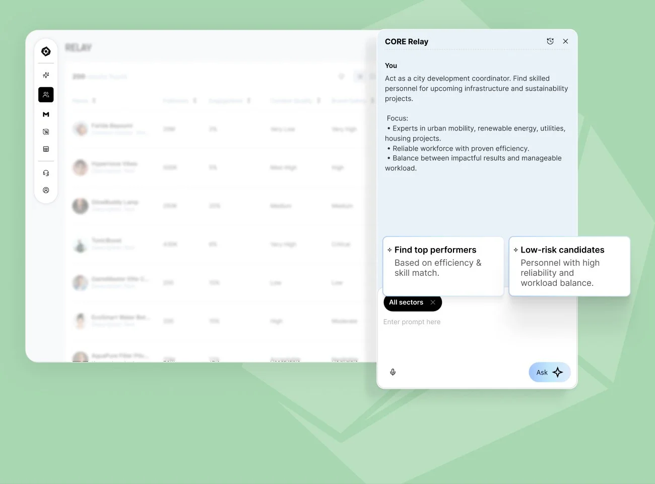CORE Relay brings human-centered intelligence to system coordination. By combining voice, text, and contextual prompts, it streamlines collaboration across operators, vendors, and regulators. Relay ensures the right expertise is matched to the right task, improving efficiency, balancing workloads, and accelerating sustainable project delivery.