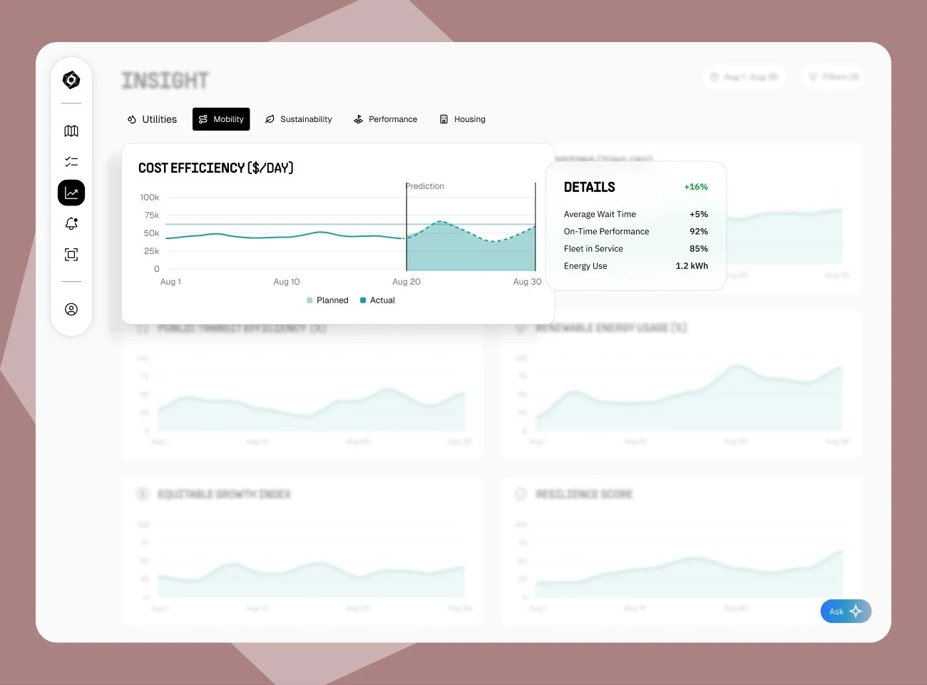 CORE Insight transforms raw telemetry into actionable intelligence, delivering real-time analytics on cost efficiency, sustainability, and performance. By surfacing trends across utilities, mobility, and energy, it empowers operators to optimize operations while reducing waste and emissions.